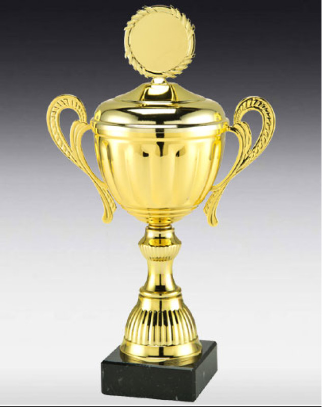 Goldfarbener Pokal mit Metalltasse, Henkel und